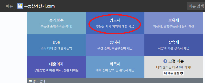 여기서 이번에 사용할 기능은 양도세 계산입니다.