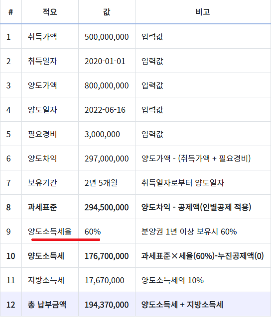 따라서 3억 차익에 대해서 거의 2억원정도를 세금으로 내야 하네요.