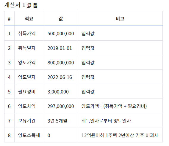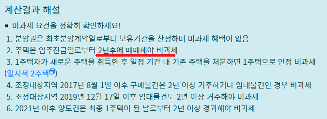 위의 결과에 따르면 12억원이하 1주택 2년이상 거주시 비과세 혜택을 받는것을 확인할수 있습니다.