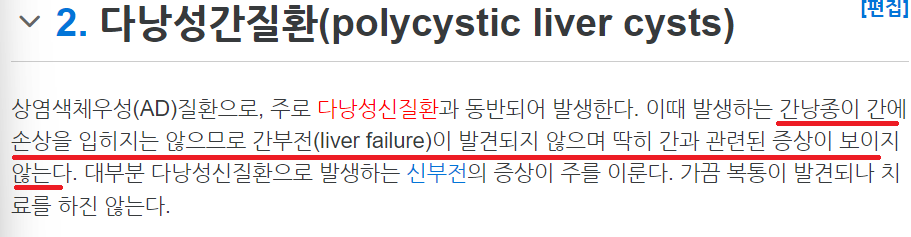 다낭성간질환을 통해 발생하는 간난종은 간에 손상을 입히지 않난다고 하네요.