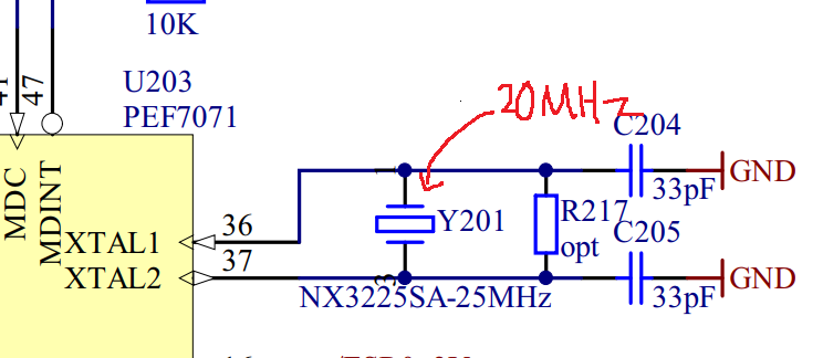위의 그림을 보면 20MHz의 외부 오실레이터를 input으로 받아서 200MHz의 주파수를 만들어 내는 것을 볼수 있다.