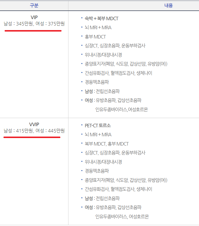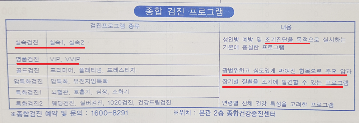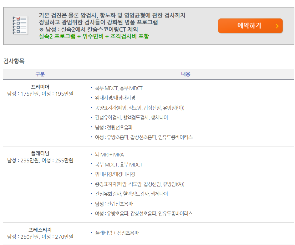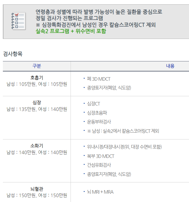 뇌 MRI, 심장CT, 위내시경/대장내시경 등 굴직한 검사들이 들어가 있습니다.