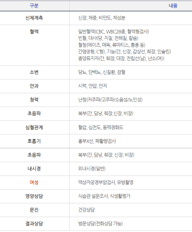 특화검진은 정말 특화항목을 검사하는 검진이네요.
