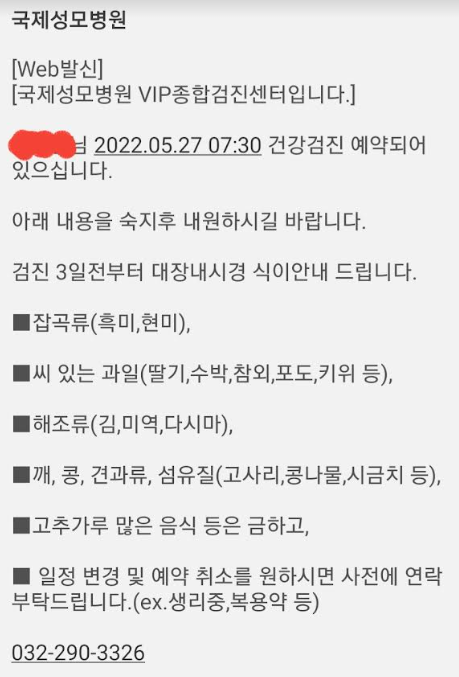 그리고, 혹시라도 종합검진에서 이상이 있는 경우는 전화가 와서,
