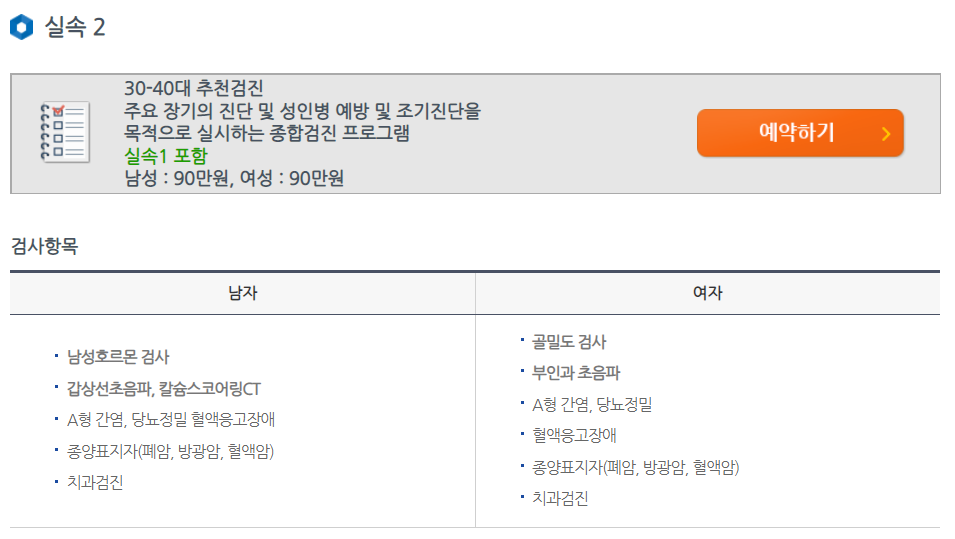 실속 2검사는 주요 장기진단 및 성인병검사를 하는 검사네요.