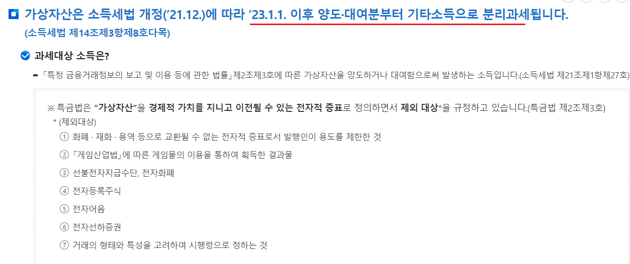 오늘 정리할 부분은 이러한 가상자산에 대해서도 과세정책이 정립이 되었기 때문에 이에 대해서