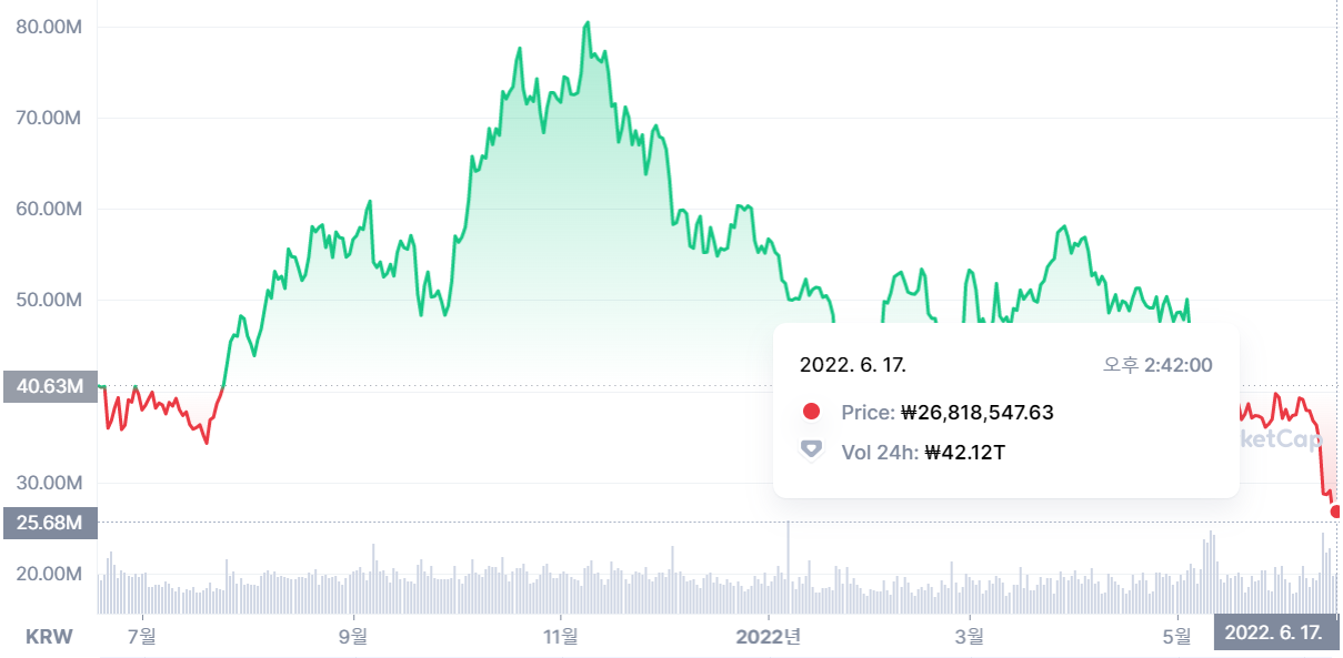하지만 현재, 가상화폐에 대한 가치가 떨어지고 있습니다.