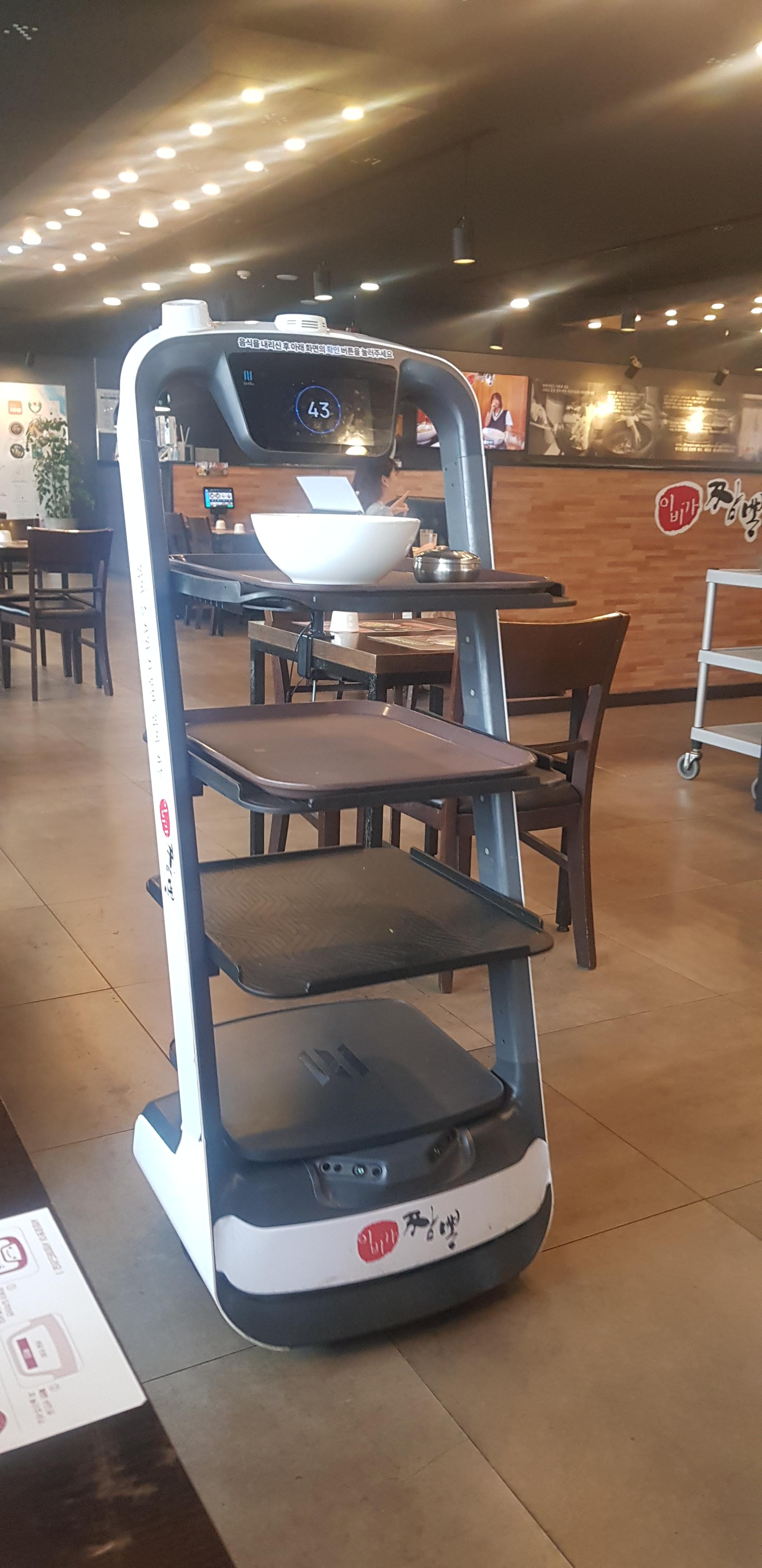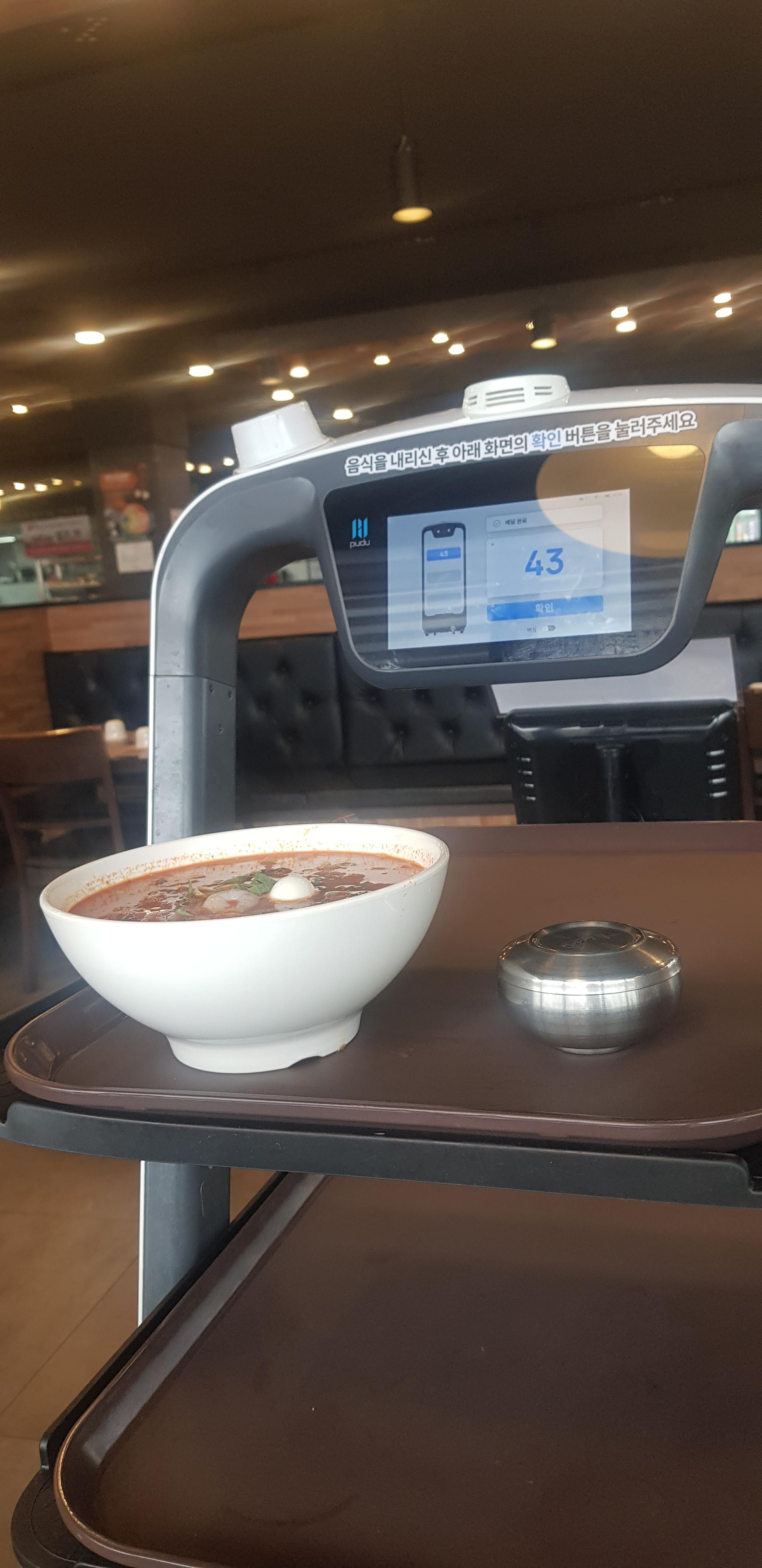 그리고 음식이나오면 이렇게 로봇이 자동으로 음식을 배달합니다.