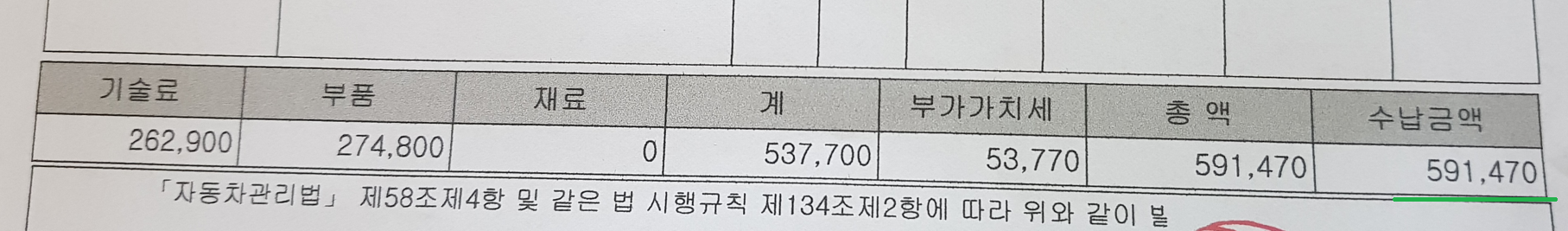 우선 전체 수리비용은 아래와 같습니다.