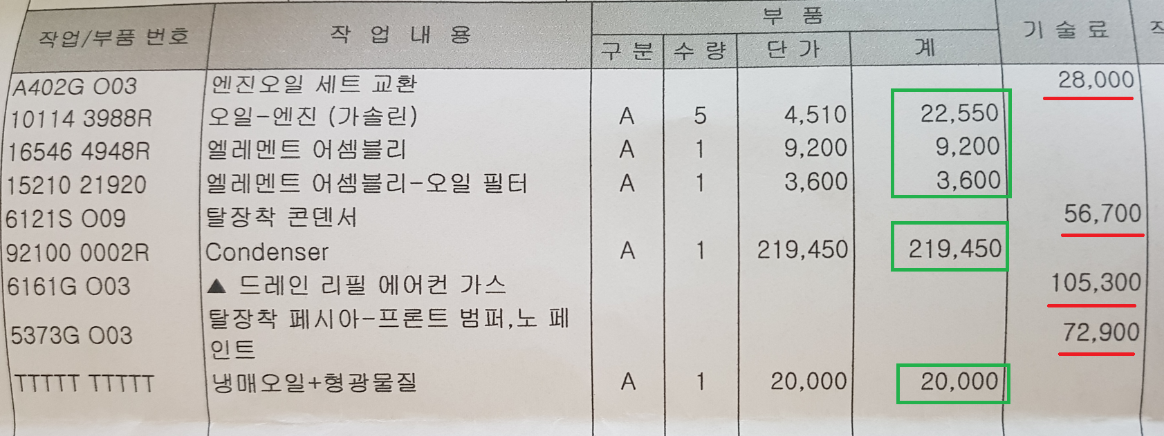 저는 자동차 에어컨 콘덴서와 엔진오엘을 교체해서