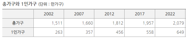 그렇다면 대한민국 가구는 총 몇가구일 까요?