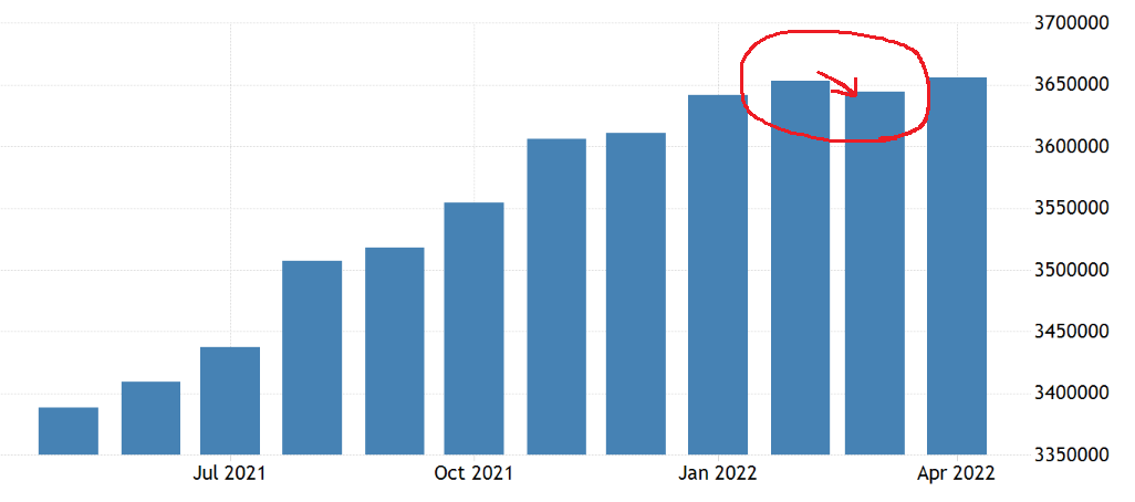 아래 그래프를 보면 현재 M2 통화량이 줄어든것을 볼수 있습니다.