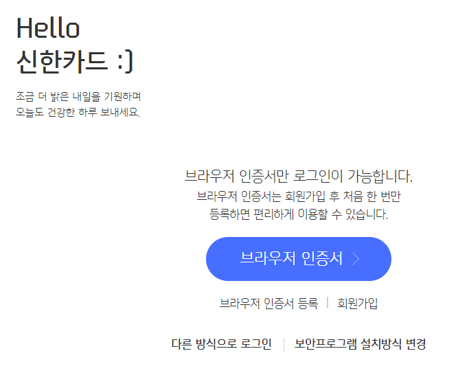 마지막으로 카드사에 로그인을 하는 과정에서 이제부터 브라우저 인증서만 가능하기 때문에