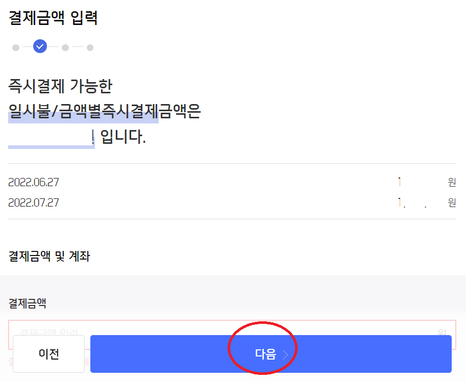 저는 150만원정도 즉시결제를 하겠다고 입력을 하였습니다.