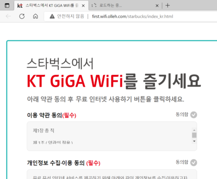 KT_starbucks로 인터넷을 누르니,