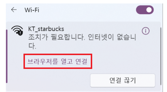 결론부터 말씀드리면, 스타벅스 인터넷을 연결하기 위해서는 '브라우저를 열고 연결'을 시켜야만