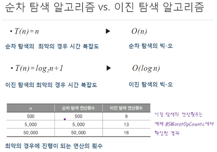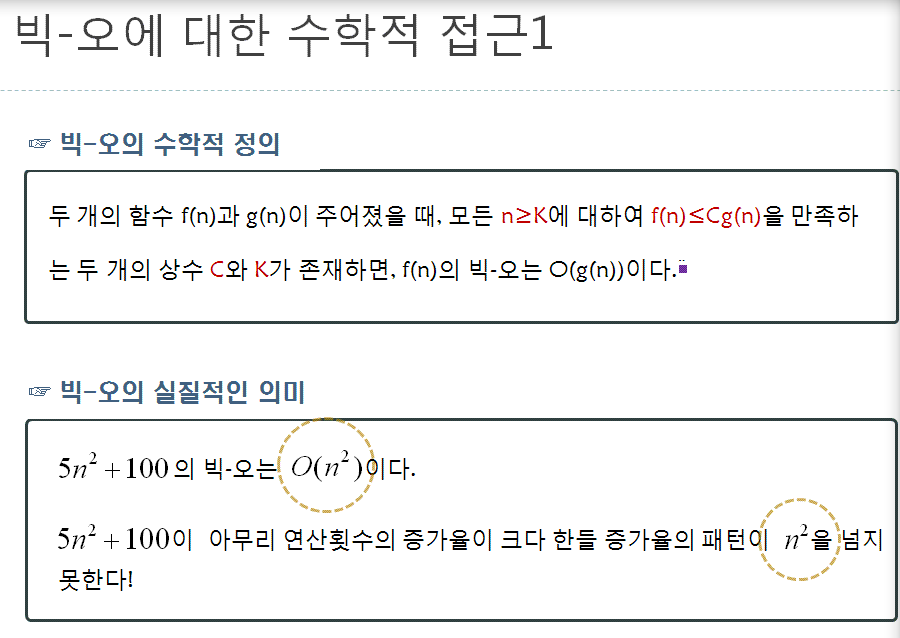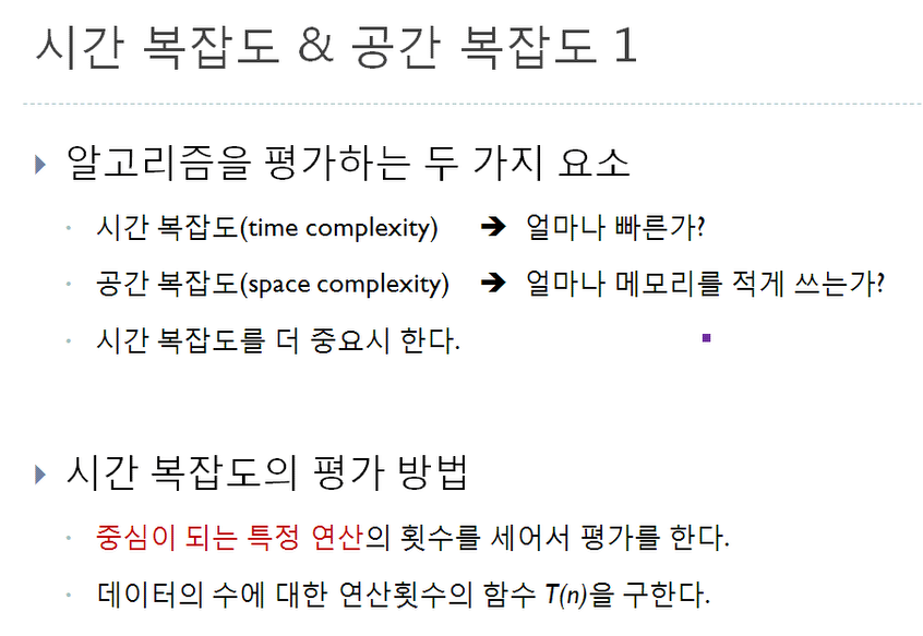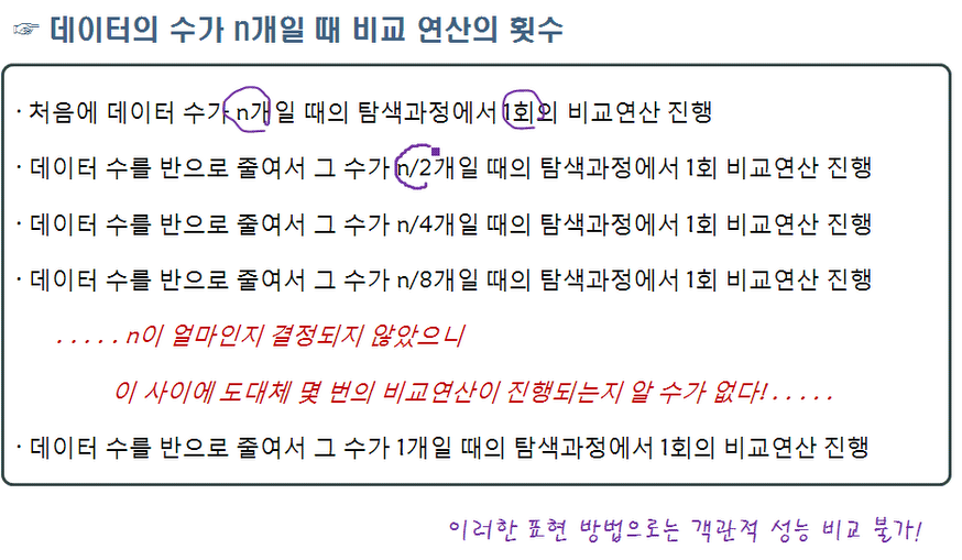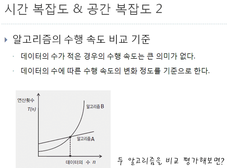 하지만 두 알고리즘 평가 기준은 데이터의 수가 늘어날때 얼마만큼의 연산 횟수가 증가하는가 입니다.