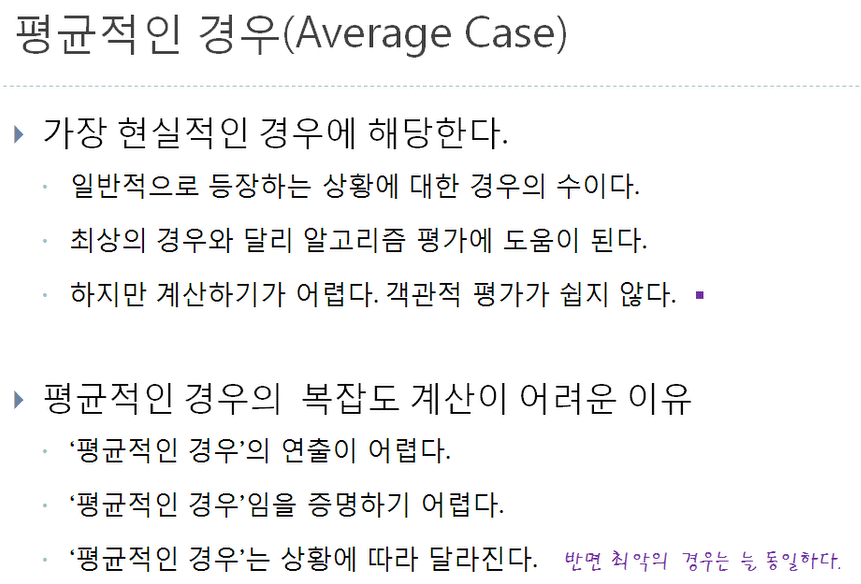 다시 말해서, 평균적 경우로 생각하기 어렵습니다.