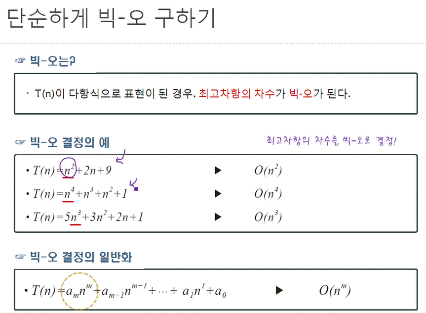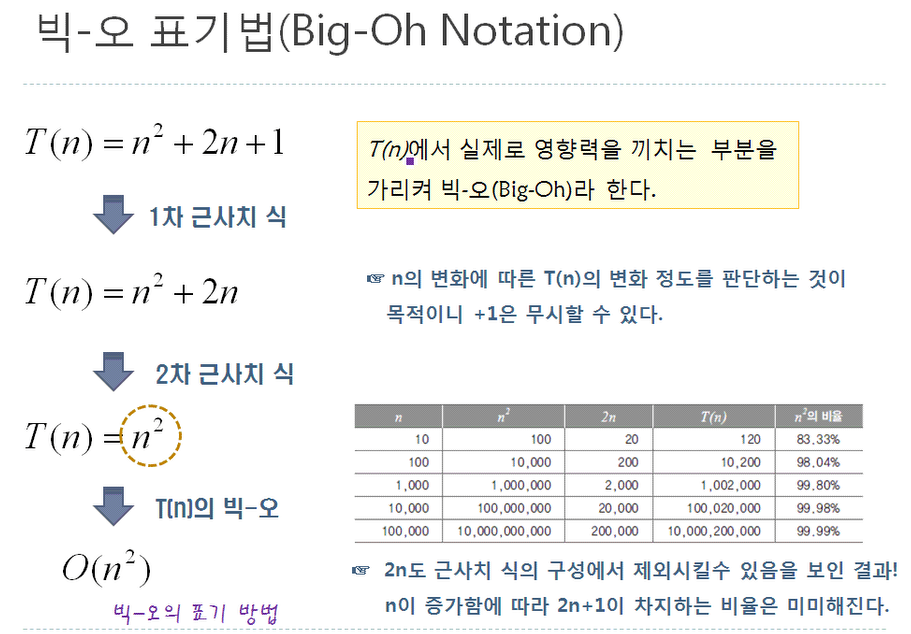 빅오라는 것은 T(n)에서 실제 영향력을 끼치는 부분을 의미합니다.