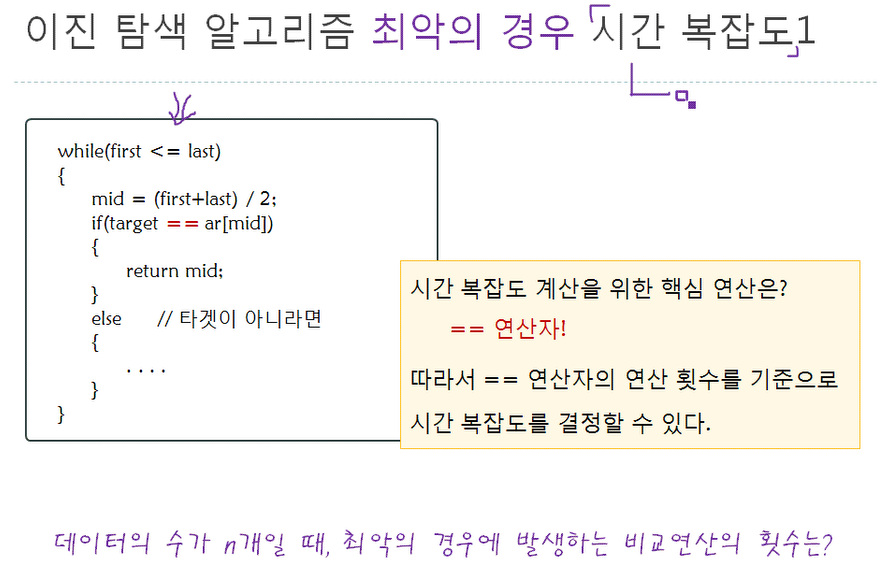 보통 로그형 빅-오를 보이는 알고리즘이 좋은 알고리즘이라고 할 수 있습니다.
