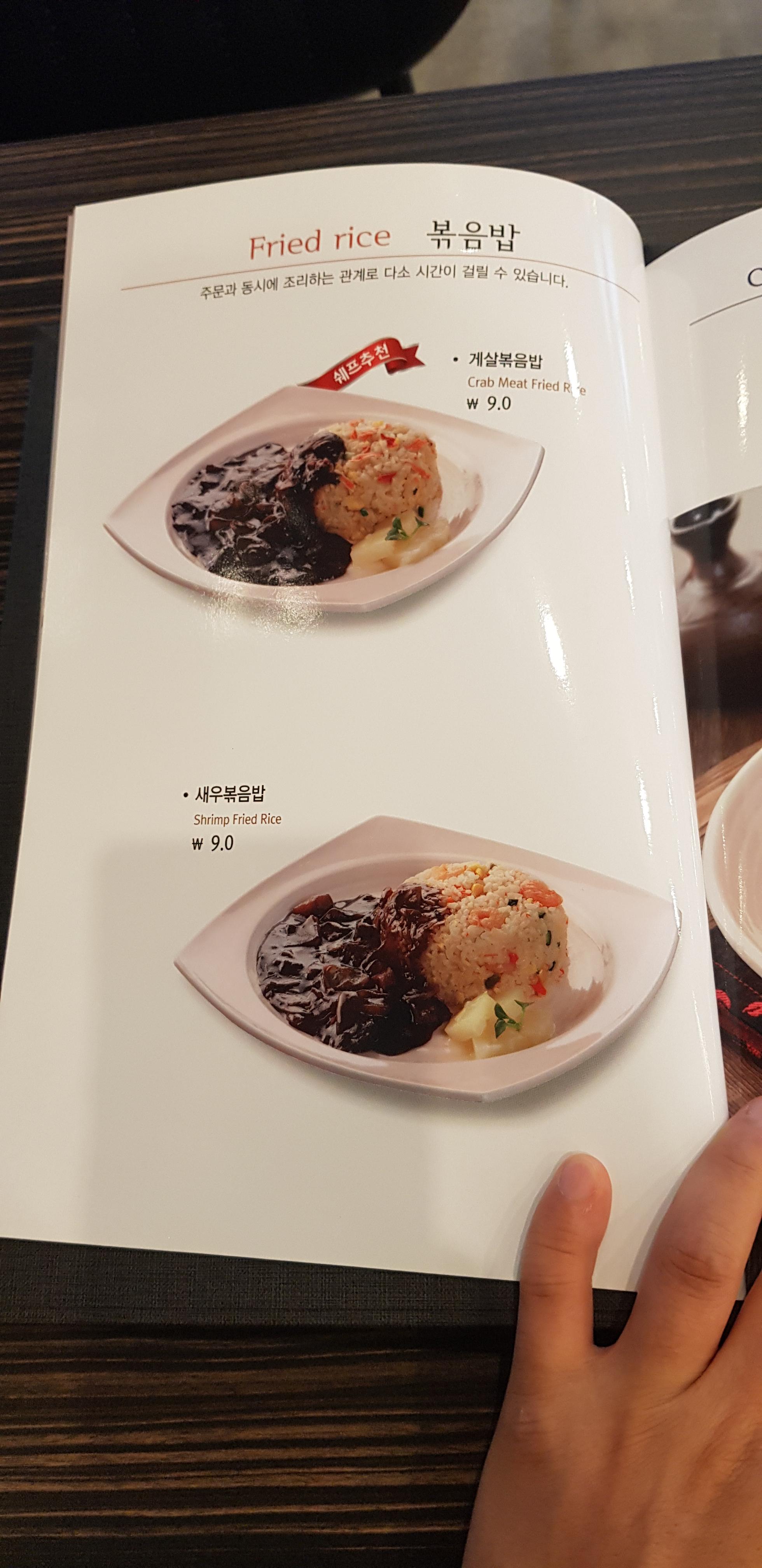 오히려 게살밥이 9,000원으로 짬뽕보다 더 저렴하네요.