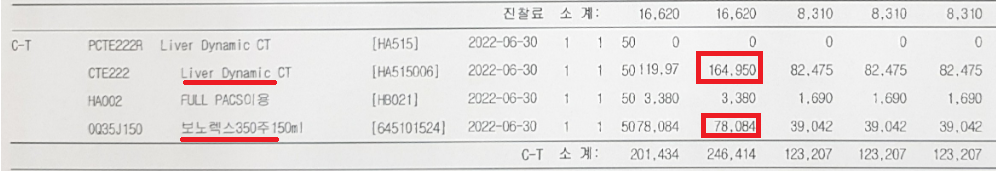 마지막으로 CT촬영 및 조영제 비용에 대해 정리하고 글을 마치도록 하겠습니다.