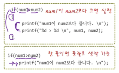 중괄호 부분에 코드가 한줄이면 중괄호 생략도 가능합니다.
