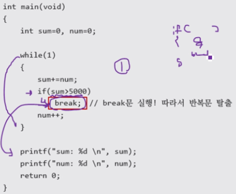 sum값이 5000을 넘을때 break 라는 구문이 실행이 될 것입니다.