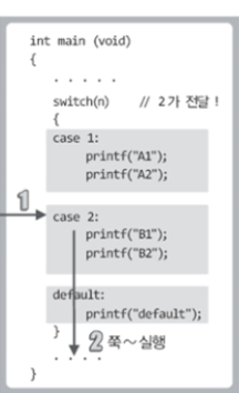 switch안에 n에 값이 1이면 case 1:로 이동하여 구문을 실행합니다.