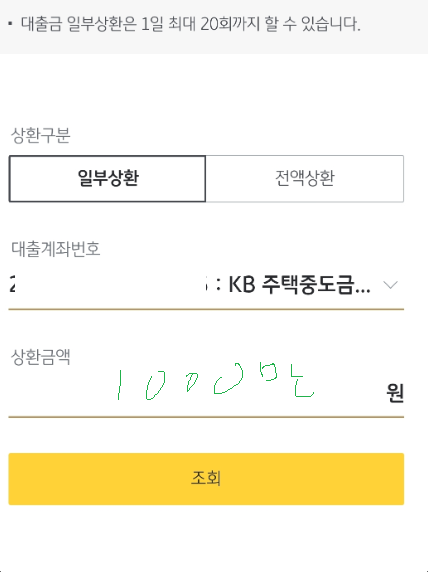 여기서 대출 상환을 선택해 주시기 바랍니다.