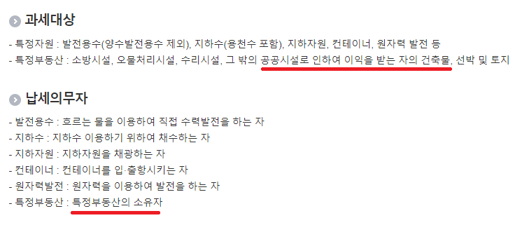 과세대상은 아래와 같이 특정자원과 특정부동산으로 나누어지게 됩니다.