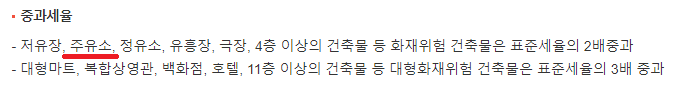 주유소를 운영하시는 분은 화재위험이 있기 때문에 중과가 되는 것을 확인 할 수 있습니다.
