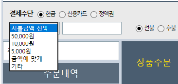 여기서 현금밖에 눌러지지 않기 때문에