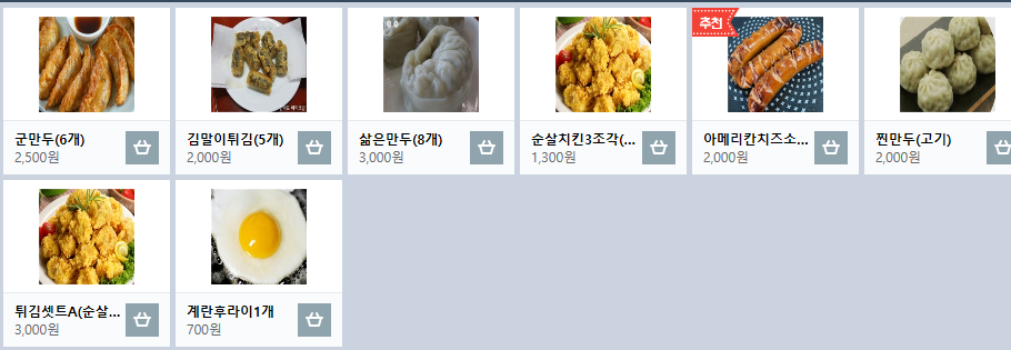 그러면 먹거리 주문하기를 한번 눌러 보도록 하겠습니다.