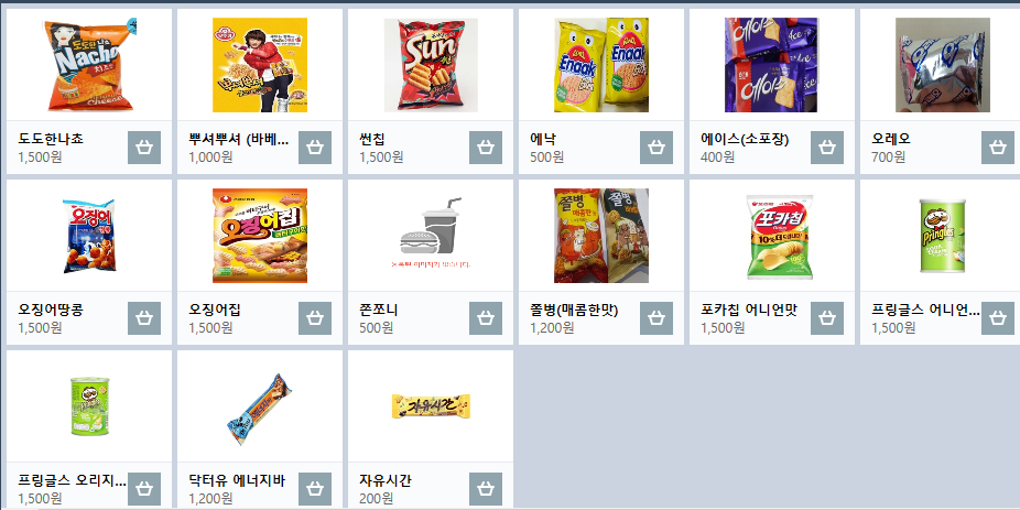 아래는 과자류입니다.