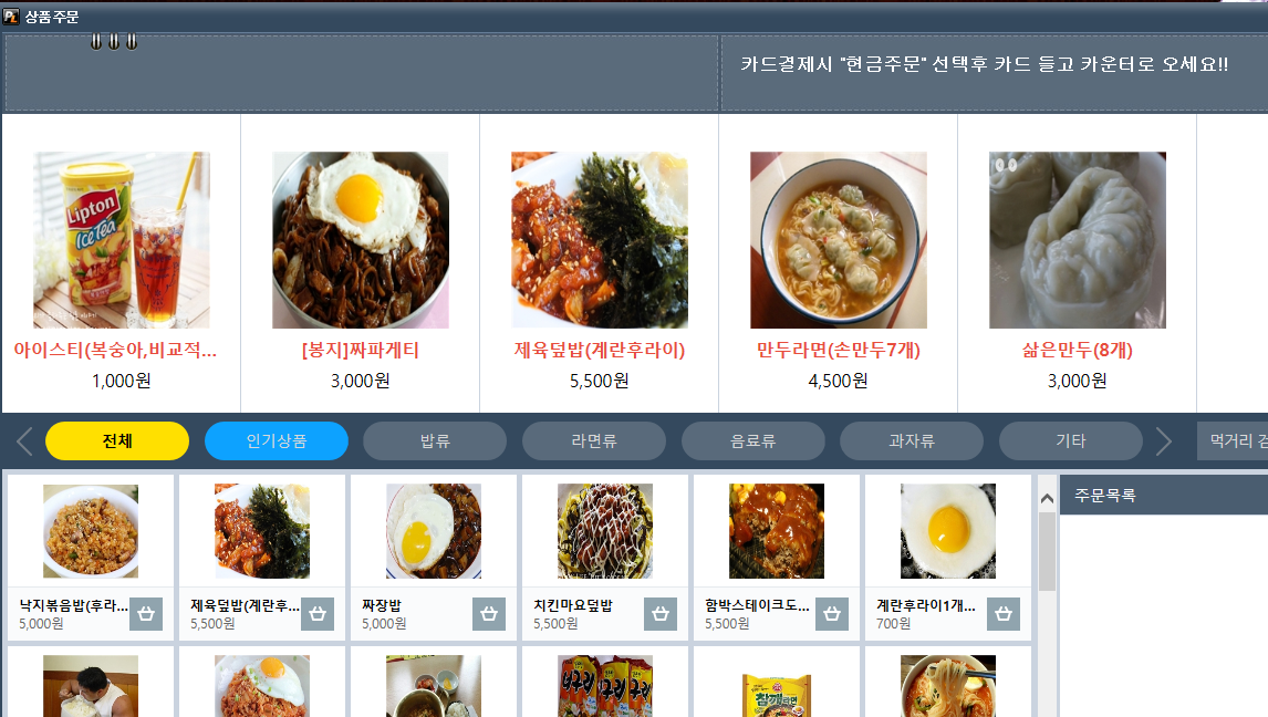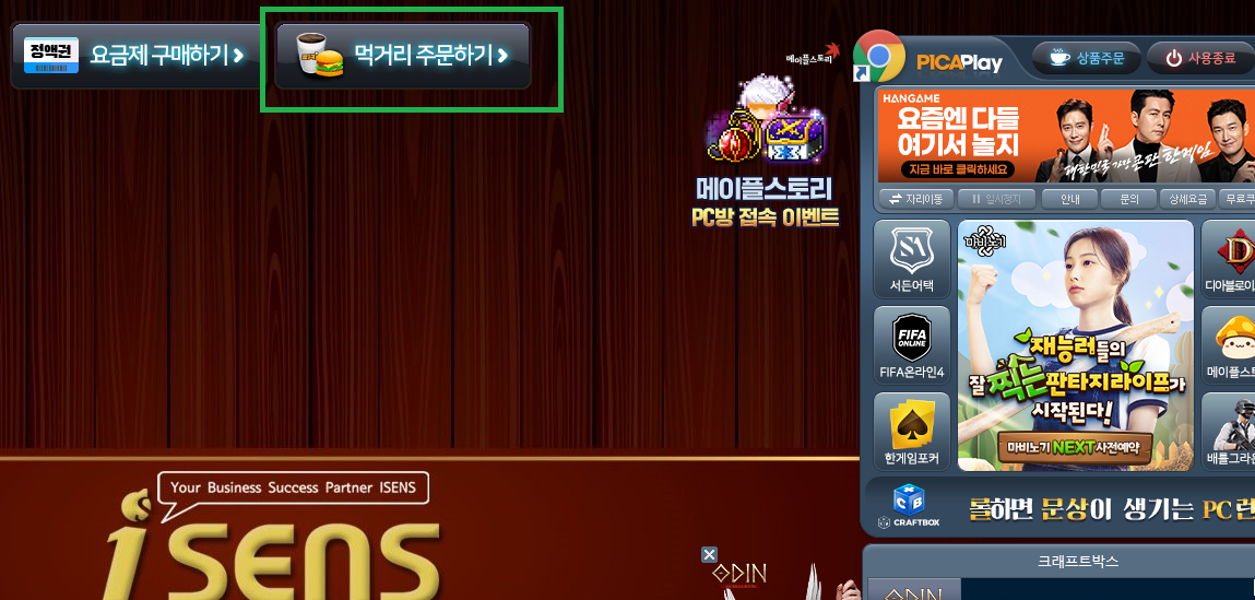 아래와 같이 PC방 바탕화면에는 먹거리 주문하기가 존재합니다.
