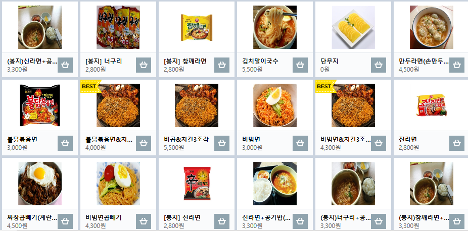 사람들이 좋아하는 라면류입니다.