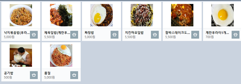 음식을 시키는 방법은 위의 메뉴를 선택하면 아래와 같이 창이 변하게 됩니다.