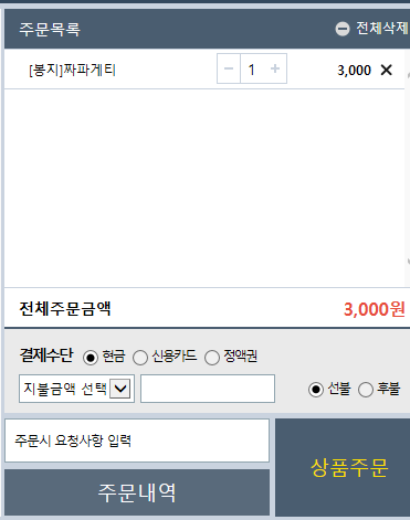 이제 상품주문을 하면 알바생분이 음식을 만들어 주고,