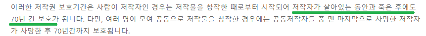 아래와 같이 저작권은 저작자가 살아있는 동안 보호가 됩니다.