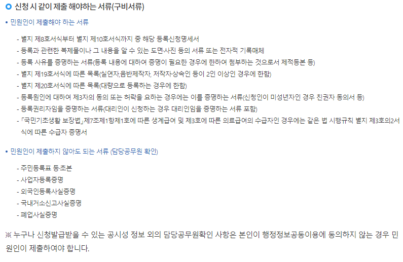 아래와 같은 구비서류를 가지고 신청을 하셔야 하니 참고해주세요.