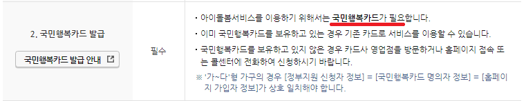 2) 국민행복카드를 발급하셔야 합니다.