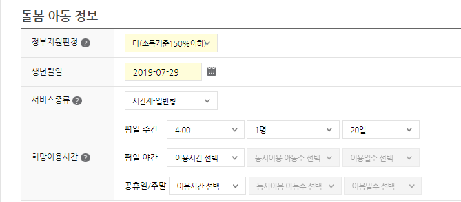 그리고 시간제로 저는 돌봄 서비스를 받으려고 합니다.