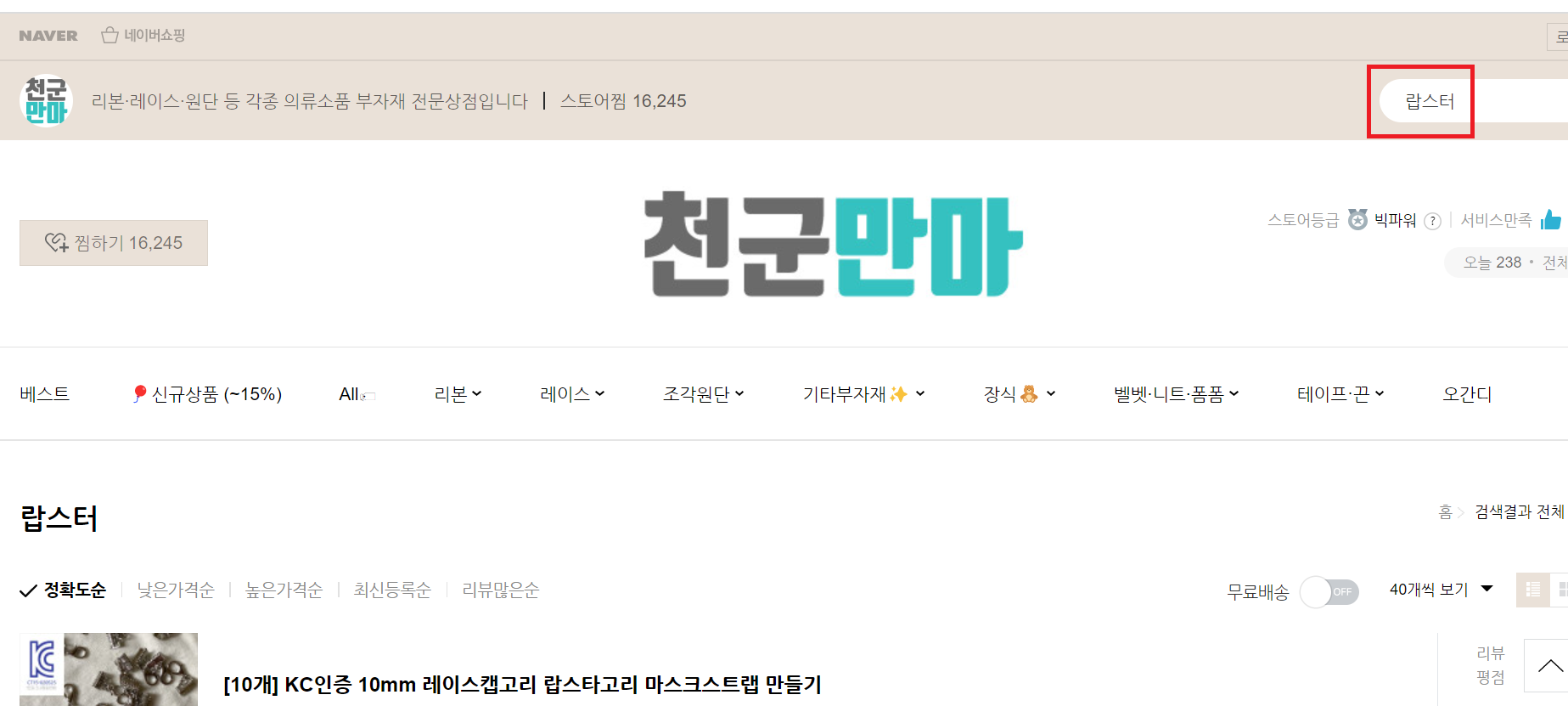 리본・레이스・원단 등 각종 의류소품 부자재 전문상점입니다