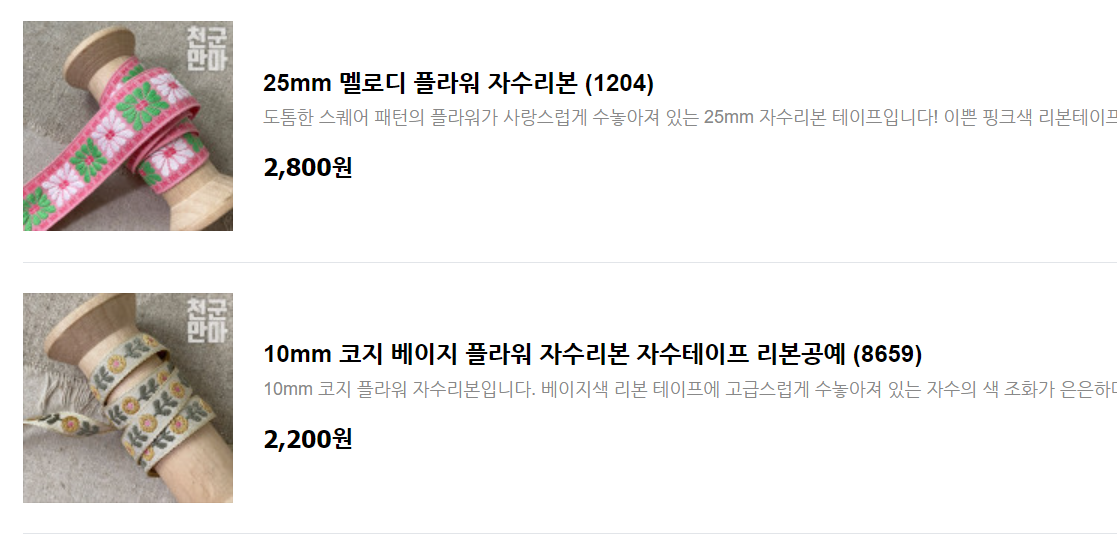 리본이 상품에 비해 원재료가 많이 싸다는 것도 알게되었습니다.