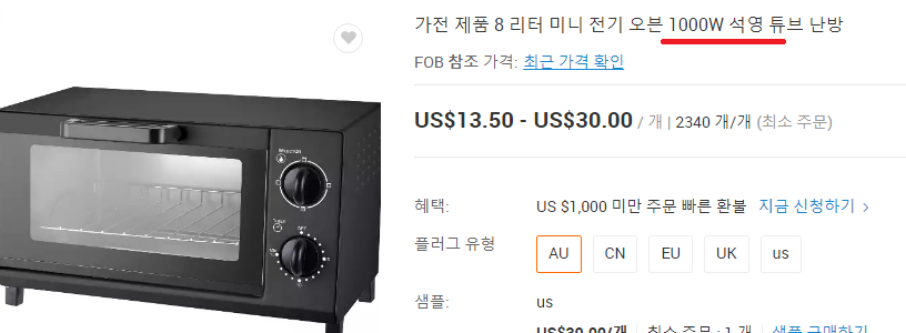 이 전기 오븐을 돌리기 위해서는 1000W의 전력이 필요합니다.