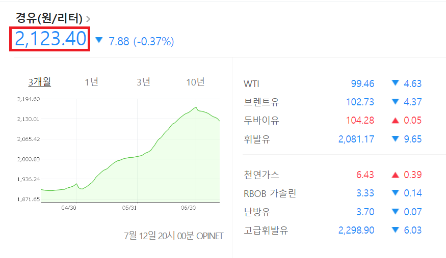 요즘 휘발유, 경유 가격이 정말 비싸졌습니다.