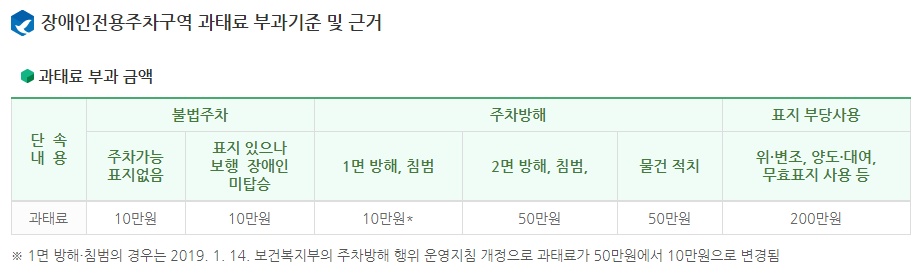 1. 장애인 전용 주차구역 위반 사례정리 및 과태료 정리