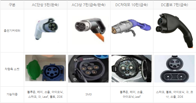 급속충전기의 경우 AC3상, DC차데모, DC콤보로 충전기가 나누어져 있습니다.