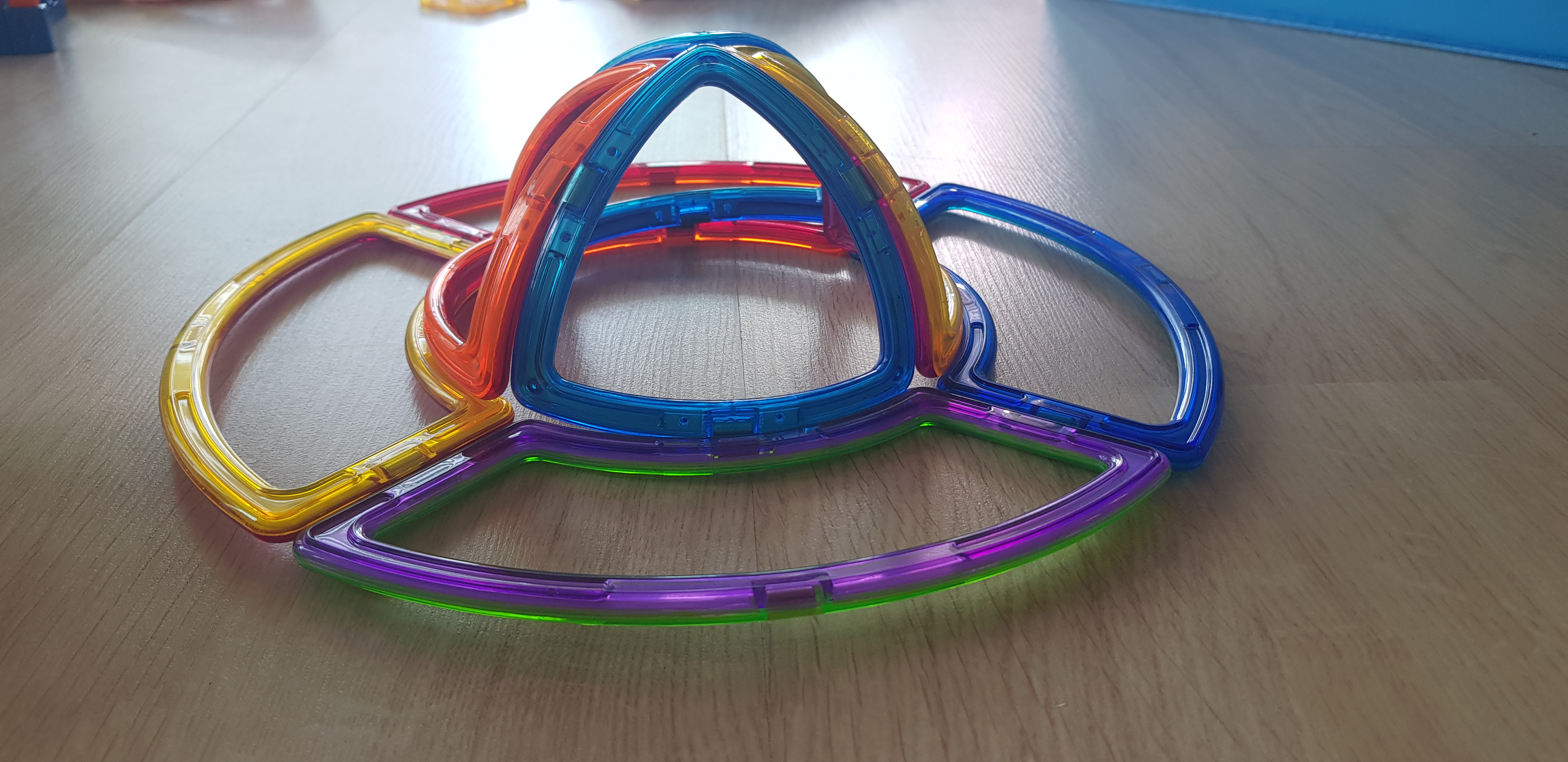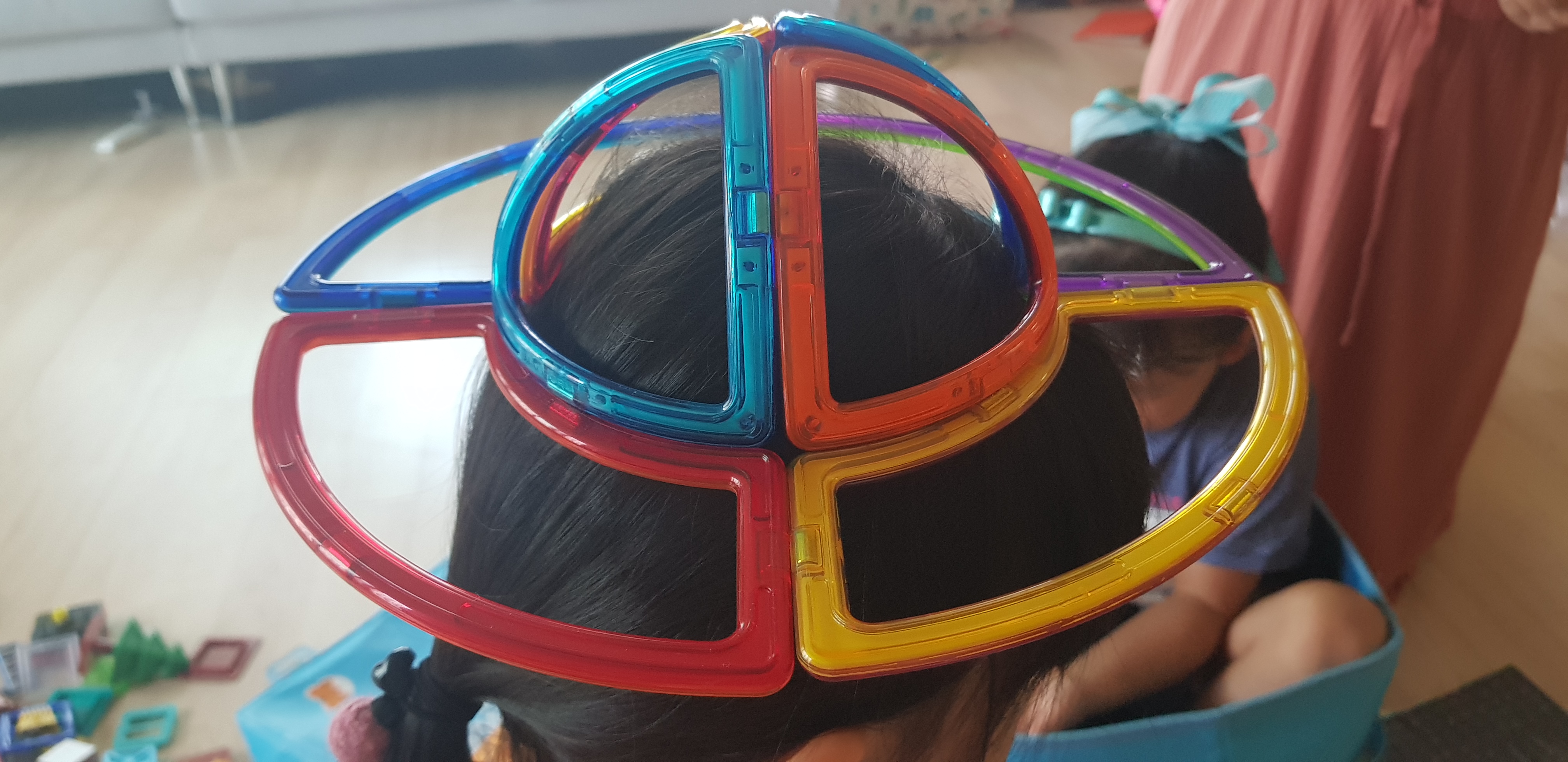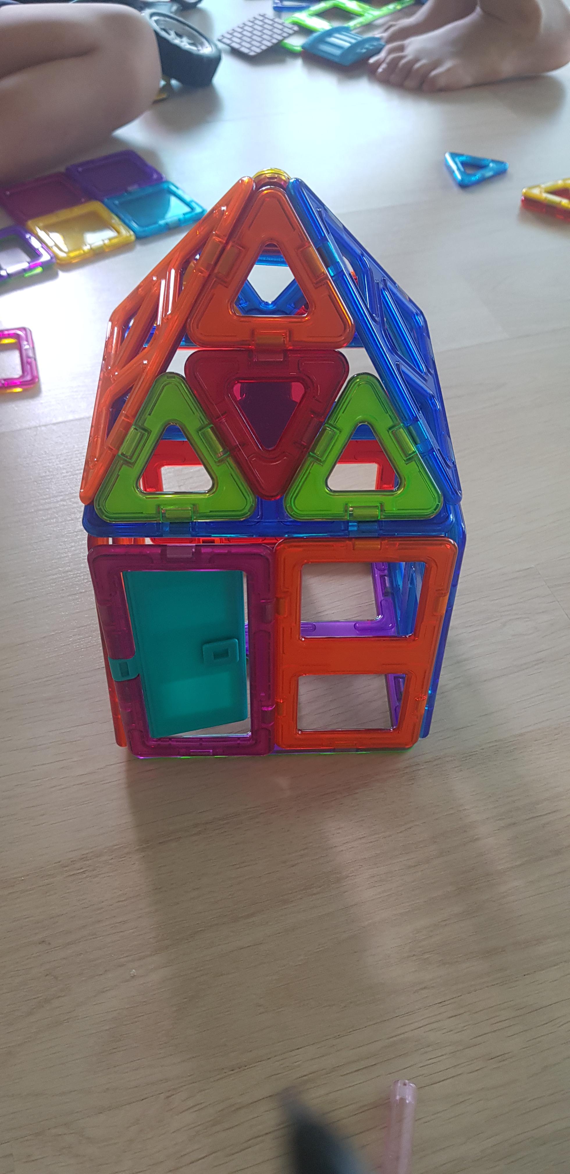 아이들과 함께 놀기 위해 맥포머스를 바닥에 쏟았습니다.
